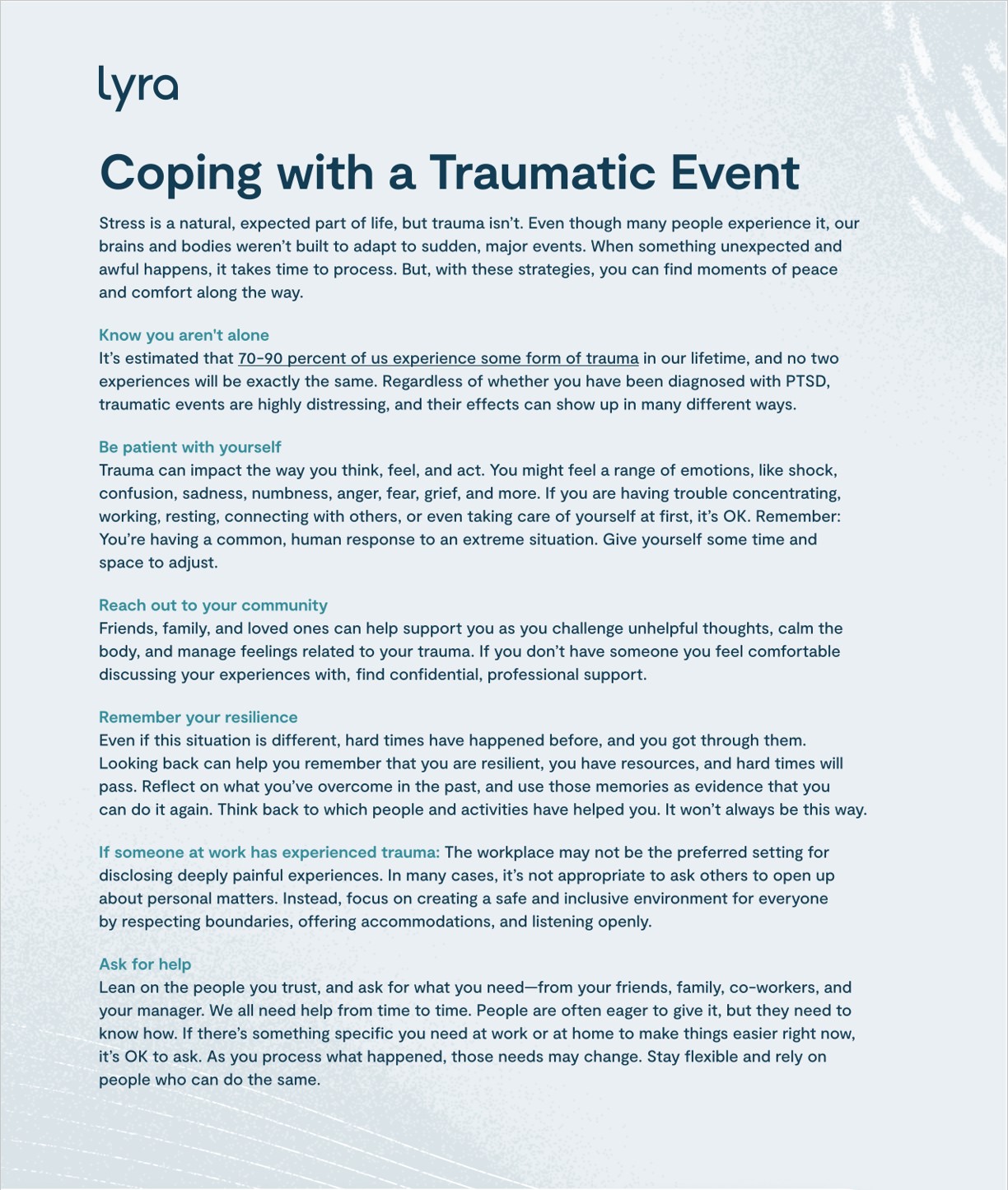 Coping with a traumatic event (document courtesy Lyra)